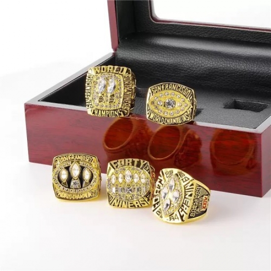 5Pcs NFL San Francisco 49ers Championship Ring Set World Cup fan memorabilia ring with wooden box – No. 11