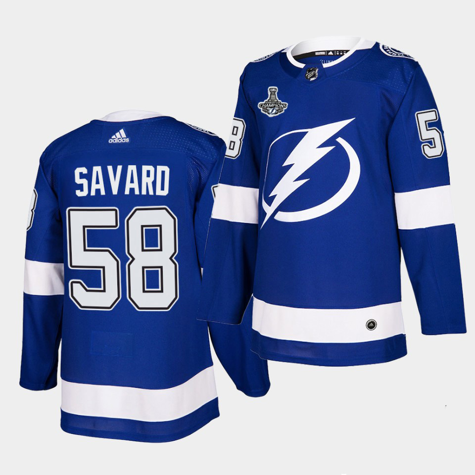 Adidas Lightning #58 David Savard Blue Home Authentic 2021 Stanley Cup Champions Jersey