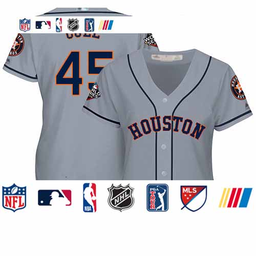 Astros #45 Gerrit Cole Grey Road 2019 World Series Bound Women’s Stitched Baseball Jersey