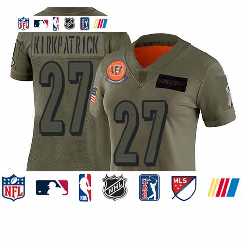 Bengals #27 Dre Kirkpatrick Camo Women’s Stitched Football Limited 2019 Salute to Service Jersey