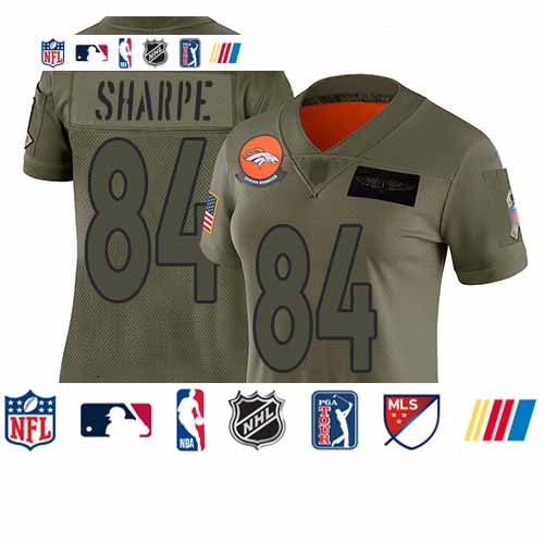 Broncos #84 Shannon Sharpe Camo Women’s Stitched Football Limited 2019 Salute to Service Jersey
