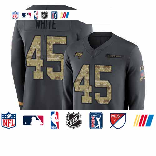 Buccaneers #45 Devin White Anthracite Salute to Service Youth Stitched Football Limited Therma Long Sleeve Jersey