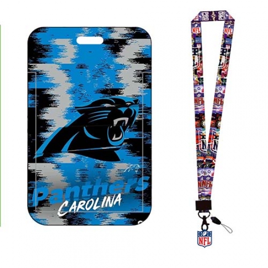 Carolina Panthers ID Stickers Badge Holder with Lanyard, Hard Plastic Key Card Work Badge Sleeve for Office,