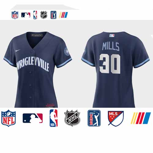 Chicago Cubs #30 Alec Mills Women’s Nike 2021 City Connect Navy MLB Jersey