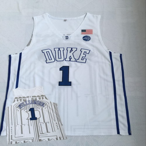 Duke Blue Devils 1 Zion Williamson White College Basketball Jersey