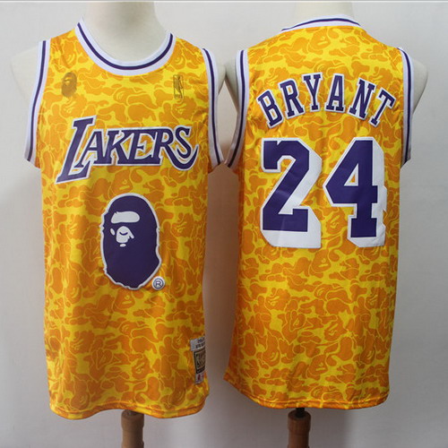 Lakers Bape 24 Kobe Bryant Yellow Hardwood Classics Jersey