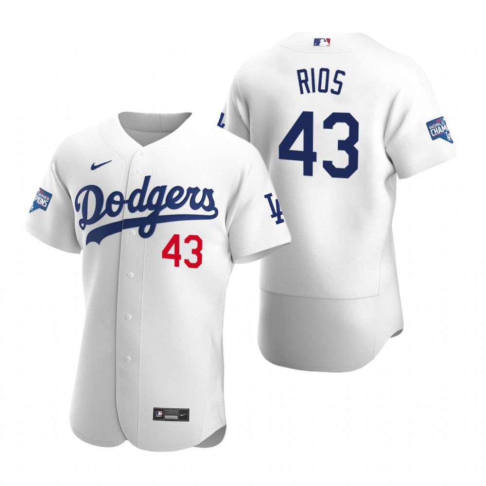 Los Angeles Dodgers #43 Edwin Rios White 2020 World Series Champions Authentic Jersey
