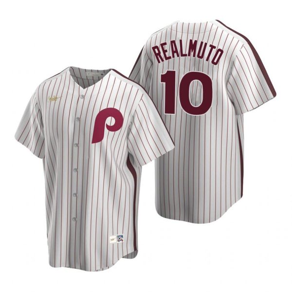 Men’s #10 J.T. Realmuto Philadelphia Phillies Cool Base Jersey White Cooperstown