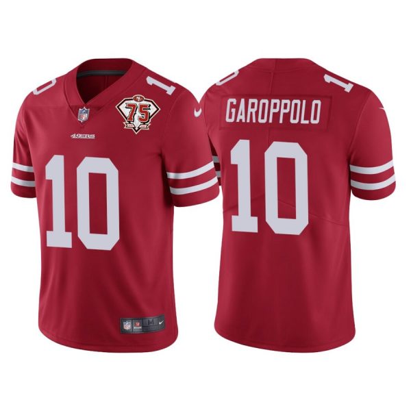 Men’s #10 Jimmy Garoppolo San Francisco 49ers 75th Anniversary Patch Limited Jersey Stitched Red