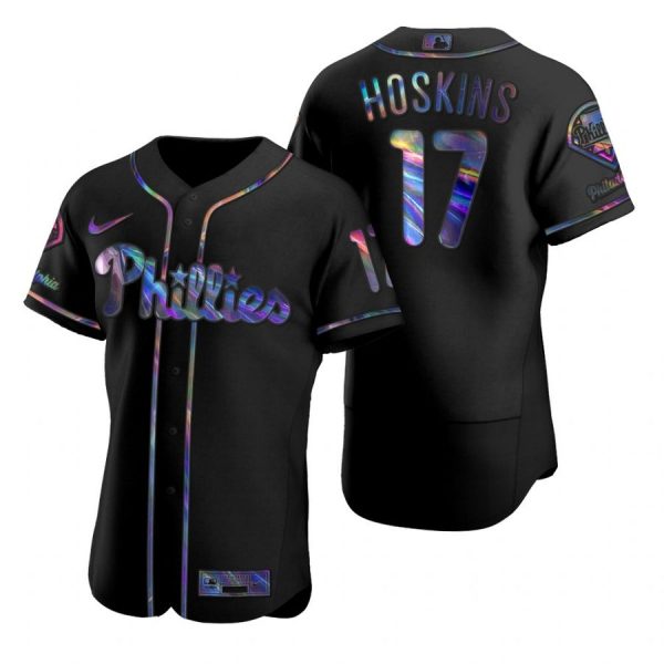 Men’s #17 Rhys Hoskins Philadelphia Phillies Flex Base Jersey Black Holographic