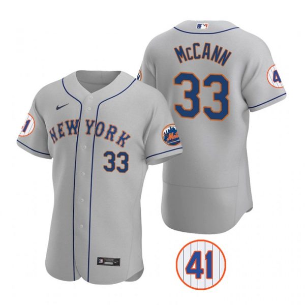 Men’s #33 James McCann New York Mets White Jersey Flex Base Gray
