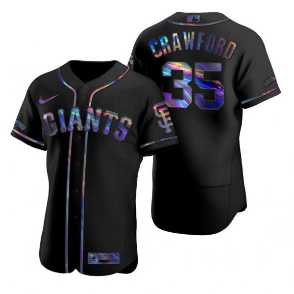 Men’s #35 Brandon Crawford San Francisco Giants Flex Base Jersey Black Holographic