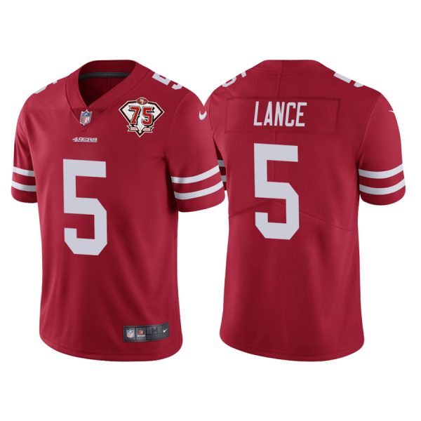 Men’s #5 Trey Lance San Francisco 49ers 75th Anniversary Patch Limited Jersey Stitched Red