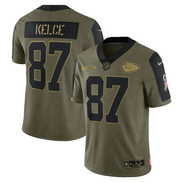 Men’s #87 Travis Kelce Kansas City Chiefs Olive 2021 Salute To Service Limited Jersey