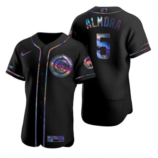 Men’s Albert Almora Jr. Chicago Cubs Flex Base Jersey Black Holographic