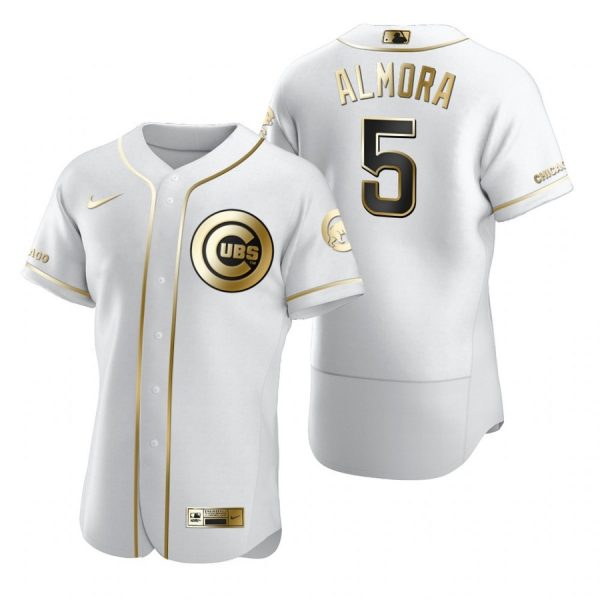 Men’s Albert Almora Jr. Chicago Cubs Flex Base Jersey White Golden