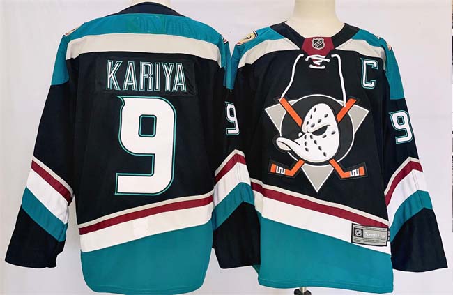 Men’s Anaheim Ducks #9 Paul Kariya Black Teal 2024-25 Stitched Jersey