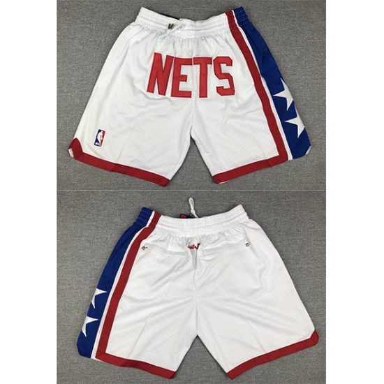 Men’s Brooklyn Nets Retro White Shorts (Run Smaller)