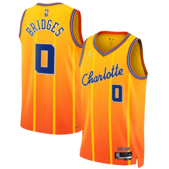 Men’s Charlotte Hornets #0 Miles Bridges Gold 2025-26 City Edition Swingman Stitched Jersey