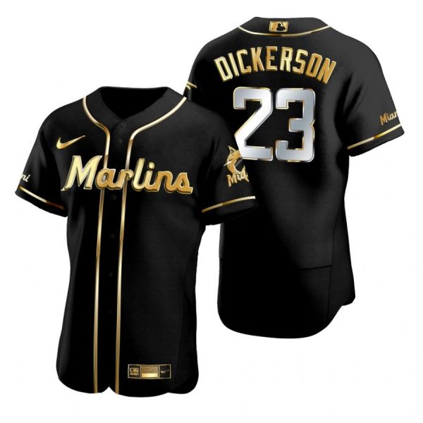 Men’s Corey Dickerson Miami Marlins Flex Base Jersey Black Golden