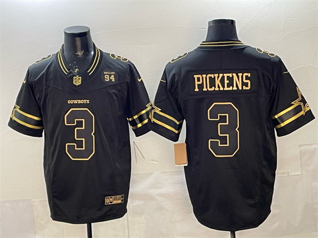 Men’s Dallas Cowboys #3 George pickens Black Gold 2025 F.U.S.E. 94 Marshawn Kneeland Memorial Patch Vapor Limited Stitched Football Jersey