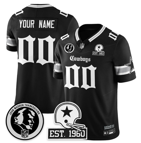 Men’s Dallas Cowboys Active Player Custom Black 2025 F.U.S.E. With John Madden Patch & Established In 1960 Patch Vapor Limited Stitched Football Jersey