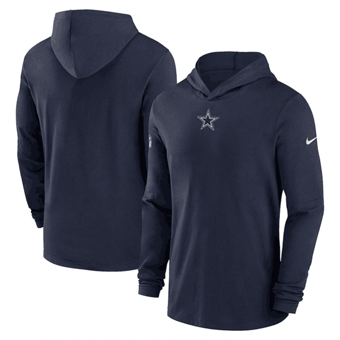Men’s Dallas Cowboys Navy Sideline Performance Long Sleeve Hoodie T-Shirt