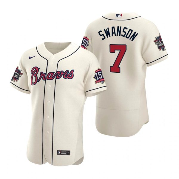 Men’s Dansby Swanson Atlanta Braves Flex Base All Star Jersey Cream