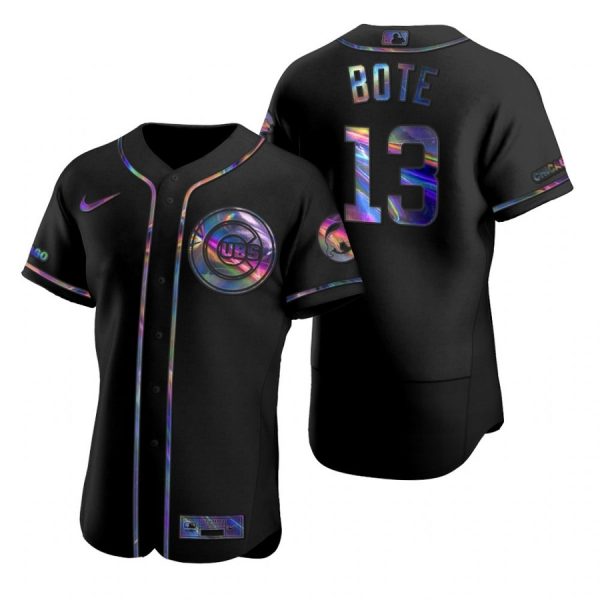 Men’s David Bote Chicago Cubs Flex Base Jersey Black Holographic
