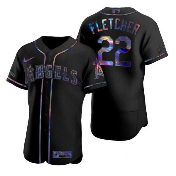 Men’s David Fletcher Los Angeles Angels Flex Base Jersey Black Holographic