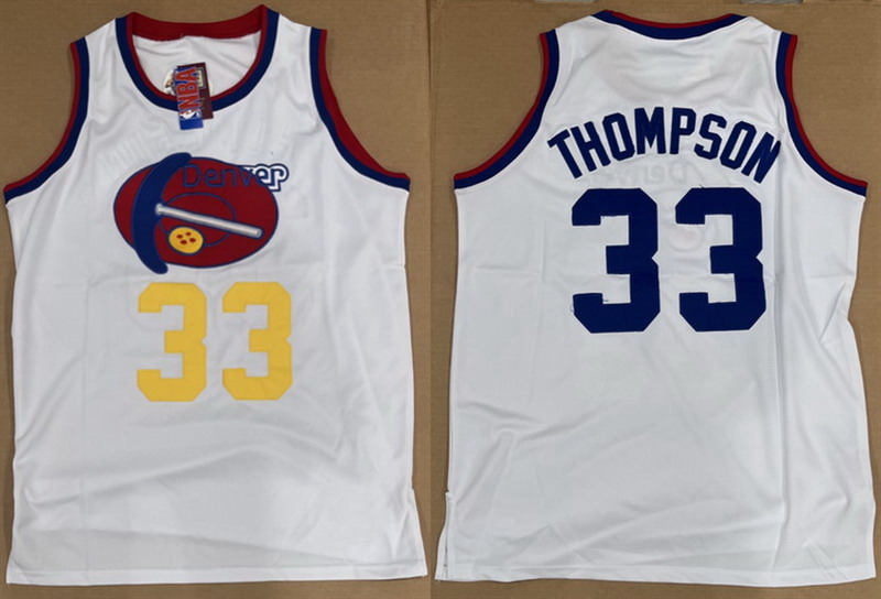 Men’s Denver Nuggets #33 David Thompson White Stitched Basketball Jersey