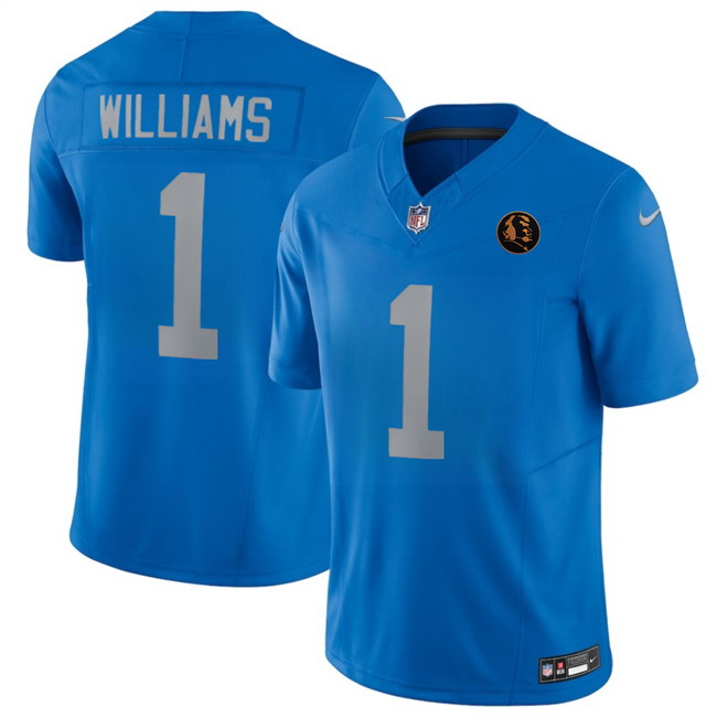 Men’s Detroit Lions #1 Jameson Williams Blue 2025 F.U.S.E.With John Madden Patch Vapor Limited Stitched Jersey