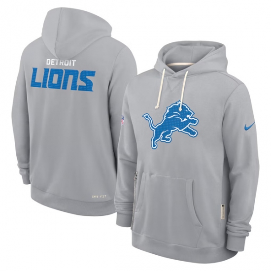 Men’s Detroit Lions Gray Sideline Standard Issue Initial Home Dri-FIT Pullover Hoodie