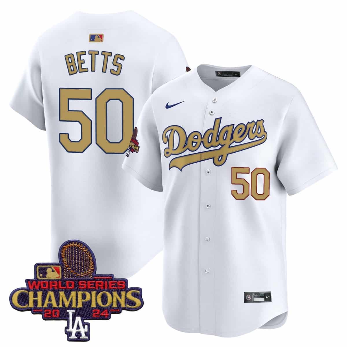 Men’s Dodgers 2025 Gold Vapor Premier Limited Jersey All Stitched White Mookie Betts #50