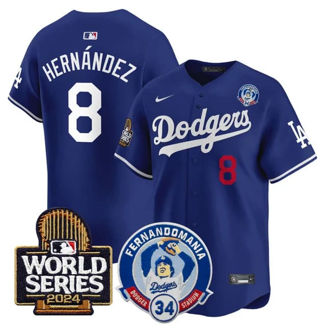 Men’s Dodgers Fernando Valenzuela & 2024 World Series Patch Vapor Premier Limited Jersey V3 All Stitched Kike Hernandez #8
