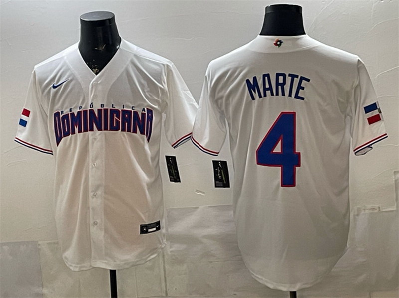 Men’s Dominican Republic Baseball #4 Ketel Marte White 2026 World Baseball Classic Home Stadium Stitched Jersey