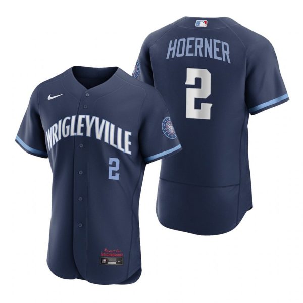 Men’s – Flex Base Chicago Cubs Nico Hoerner City Connect Wrigleyville Jersey Navy Stitched