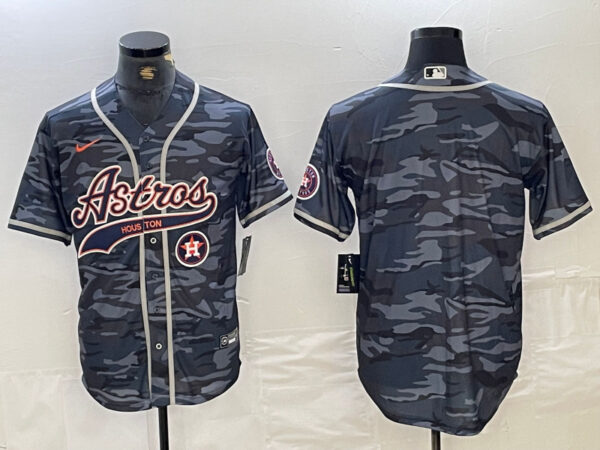 Men’s Houston Astros Blank Gray Camo With Patch Cool Base Stitched Baseball Jersey