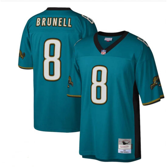Men’s Jacksonville Jaguars #8 Mark Brunell 1997 Mitchell & Ness Teal NFL Throwback Football Jersey