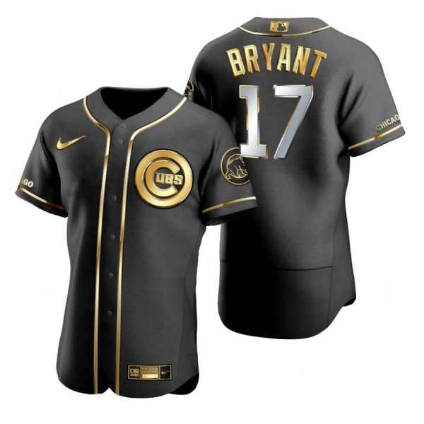 Men’s Kris Bryant Chicago Cubs Flex Base Jersey Black Golden