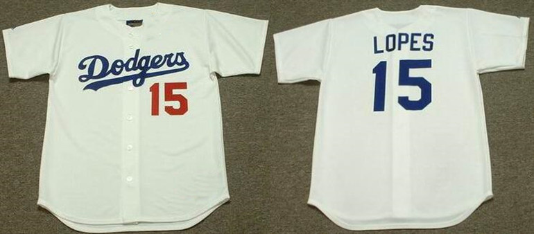 Men’s Los Angeles Dodgers #15 Davey Lopes White 1981 Throwback Stitched Baseball Jersey