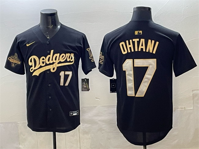 Men’s Los Angeles Dodgers #17 Shohei Ohtani Black Gold 2025 World Series Champions Patch Limited Stitched Baseball Jersey