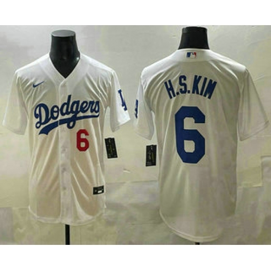 Men’s Los Angeles Dodgers #6 Hyeseong Kim White Cool Base Jersey