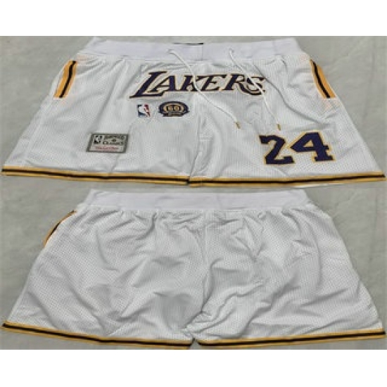Men’s Los Angeles Lakers #24 Kobe Bryant White 2025 Shorts