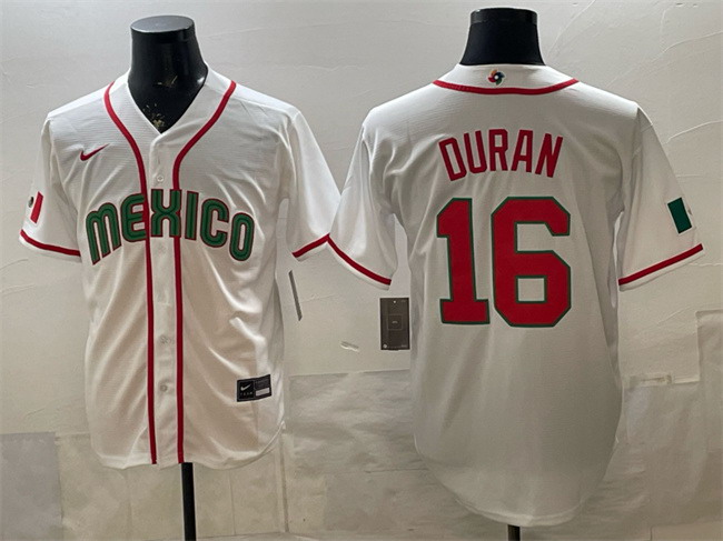Men’s Mexico Baseball #16 Jarren Duran White 2026 World Baseball Classic Home Stadium Stitched Jersey