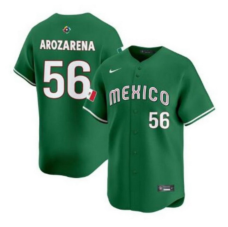 Men’s Mexico Baseball #56 Randy Arozarena Green 2026 World Baseball Classic Green Jersey