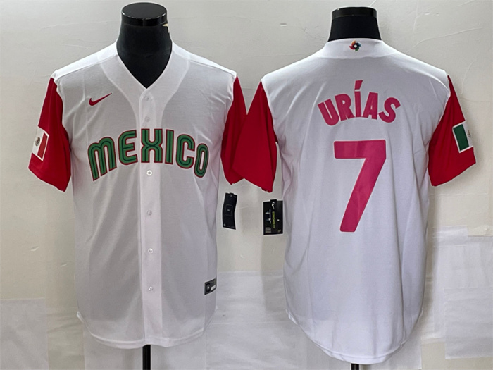 Men’s Mexico Baseball #7 Julio Urías 2023 White Red World Baseball With Patch Classic Stitched Jersey 6