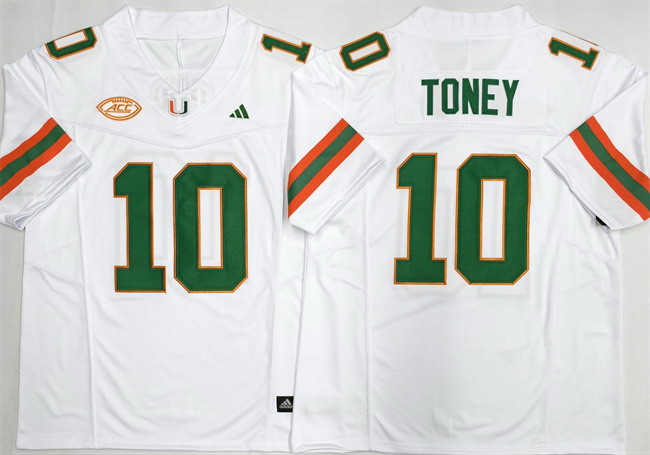 Men’s Miami Hurricanes #10 Malachi Toney White F.U.S.E. 2026 Stitched Football Jersey