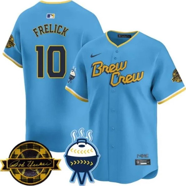 Men’s Milwaukee Brewers #10 Sal Frelick Jersey 2025 Limited Bob Uecker City Connect