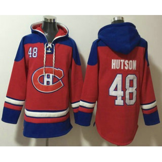 Men’s Montreal Canadiens #48 Lane Hutson Red Ageless Must Have Lace Up Pullover Hoodie